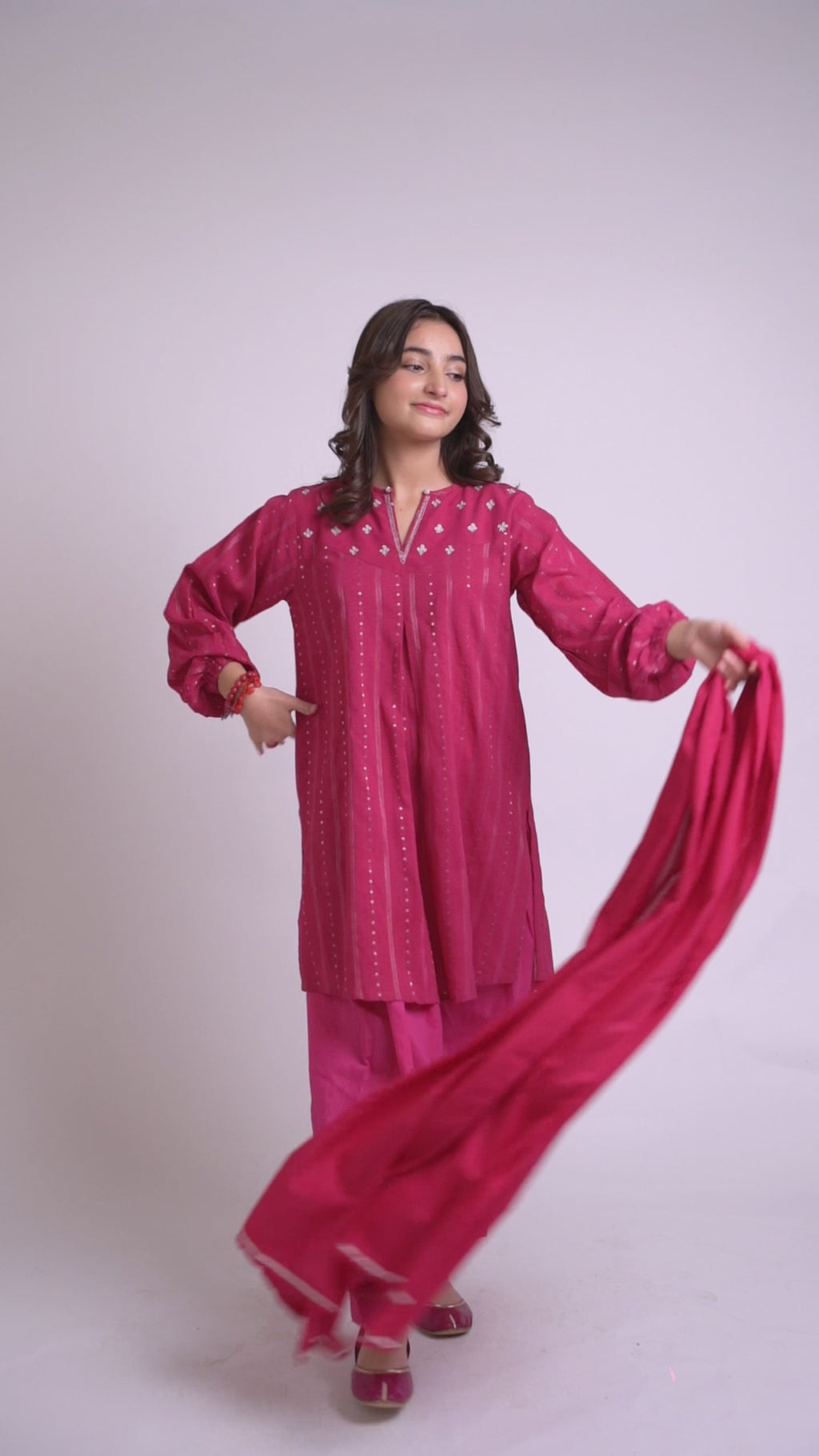 Girls winter clothes | S.Pink & Sliver | Casual 3 Piece Suit | Cotton Karandi Dobby | GAD-03213