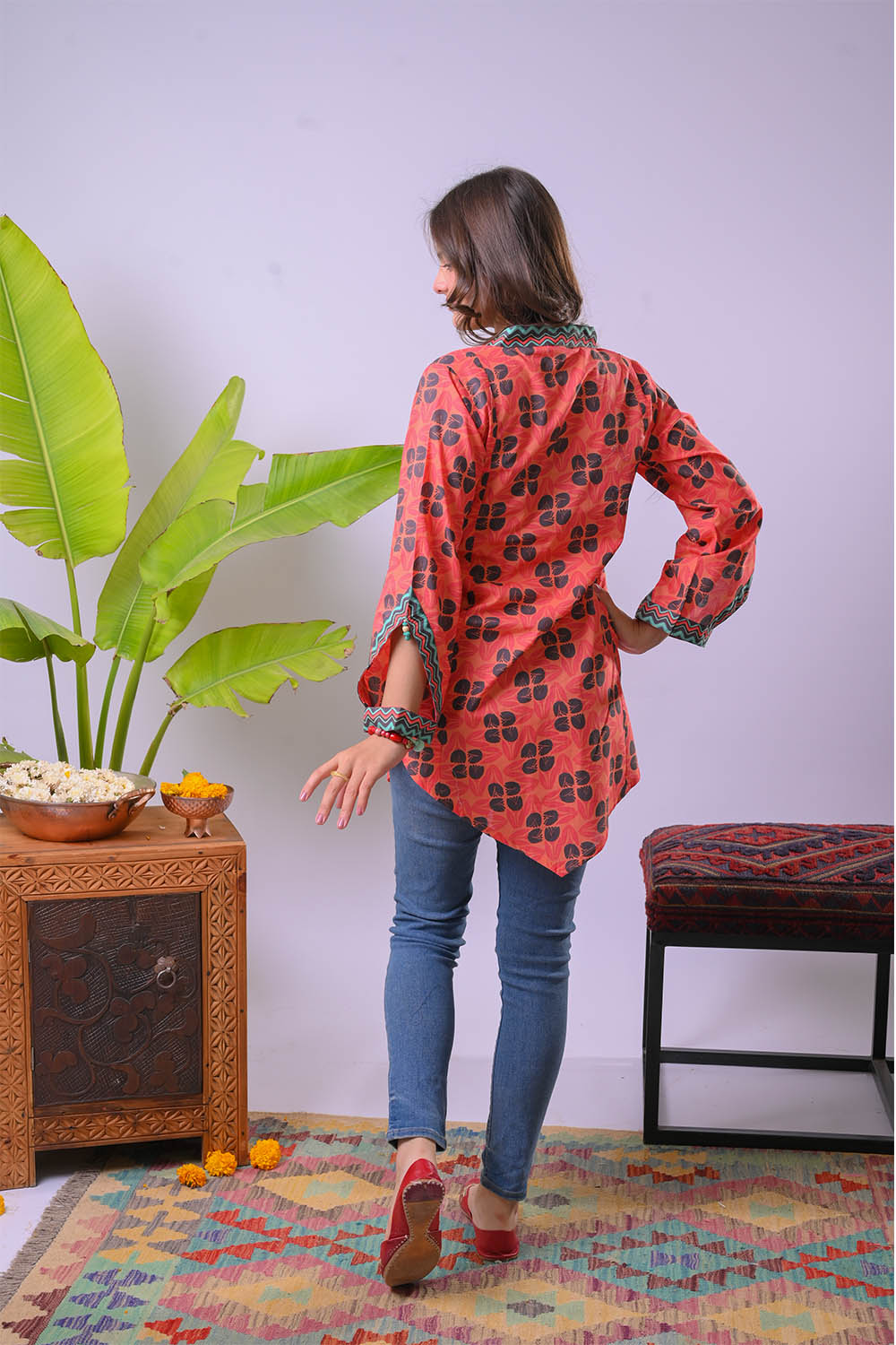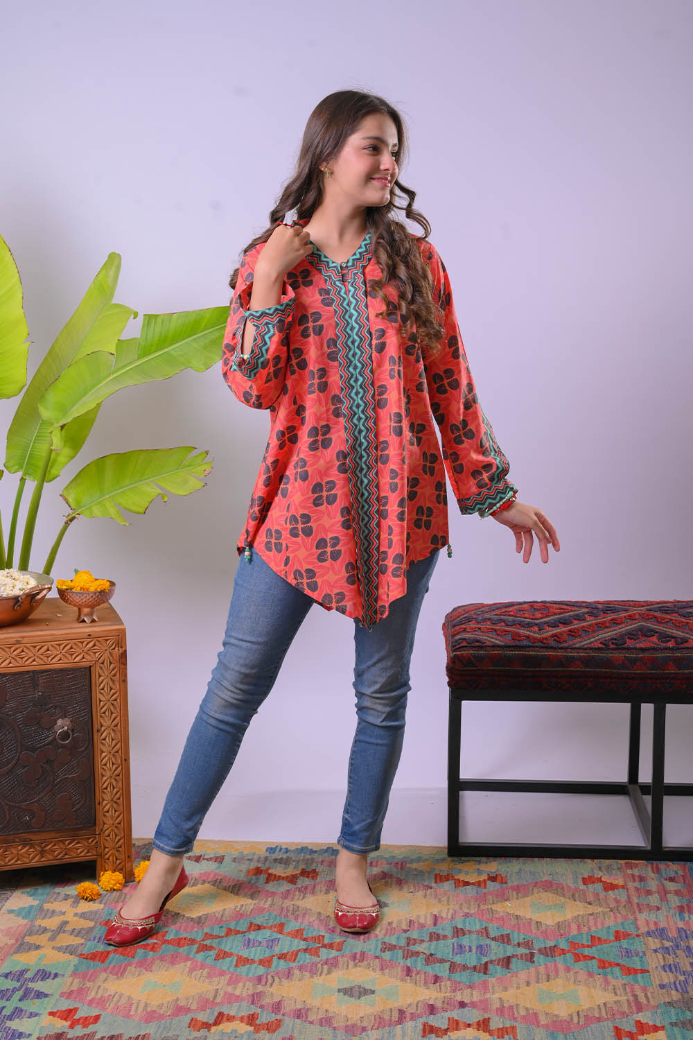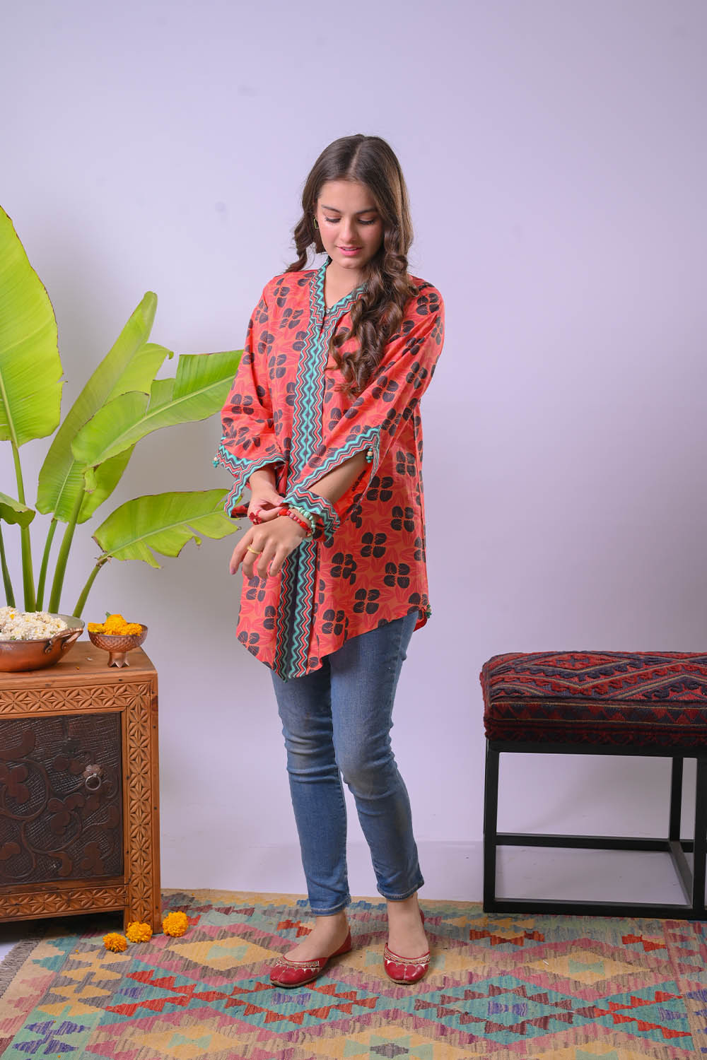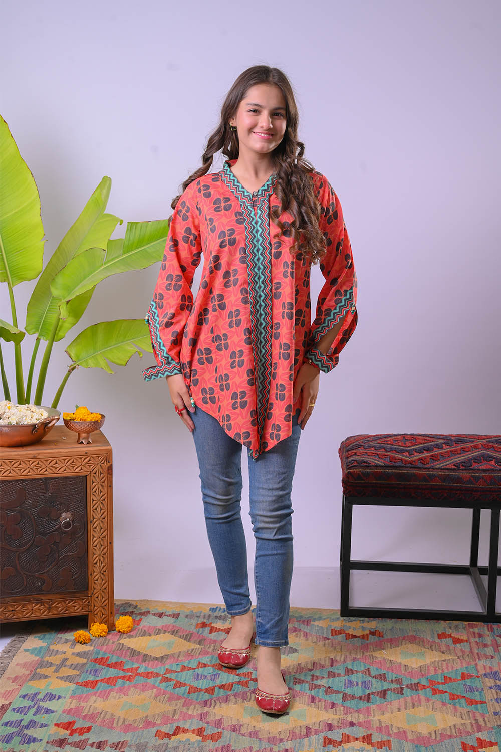 Girls Eid Dress | Orange & Multicolor | Casual Kurta | Cotton Lawn Printed | GAA-03353