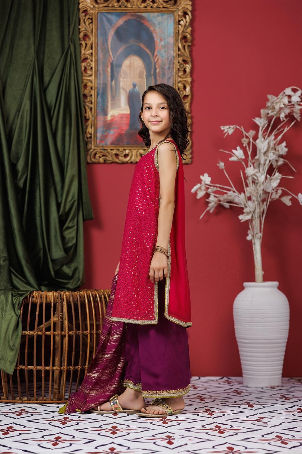 KDD-03050 | Shocking Pink & Pruple | Formal 3 Piece Suit | Viscose Crinkle Chiffon