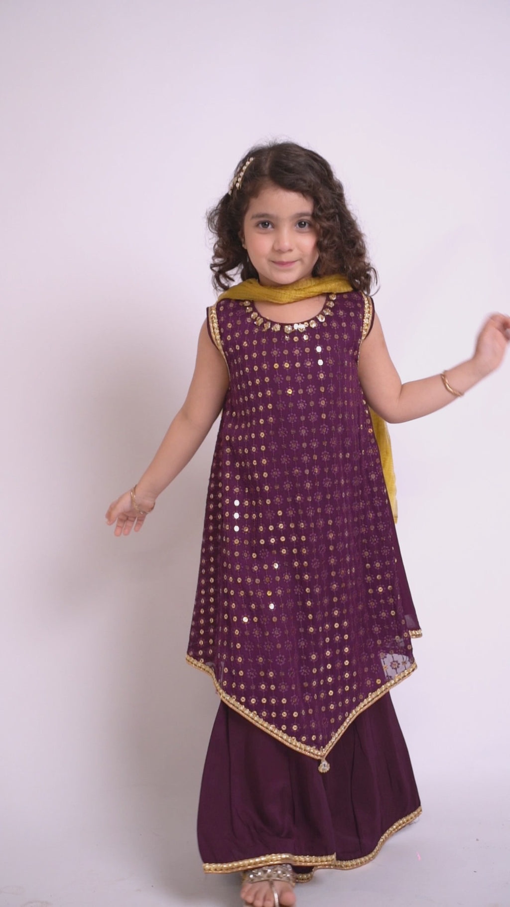 Kids formal clothes | Magenta & Gold | Formal 3 Piece Suit | Viscose Crinkle Chiffon | KDD-03049