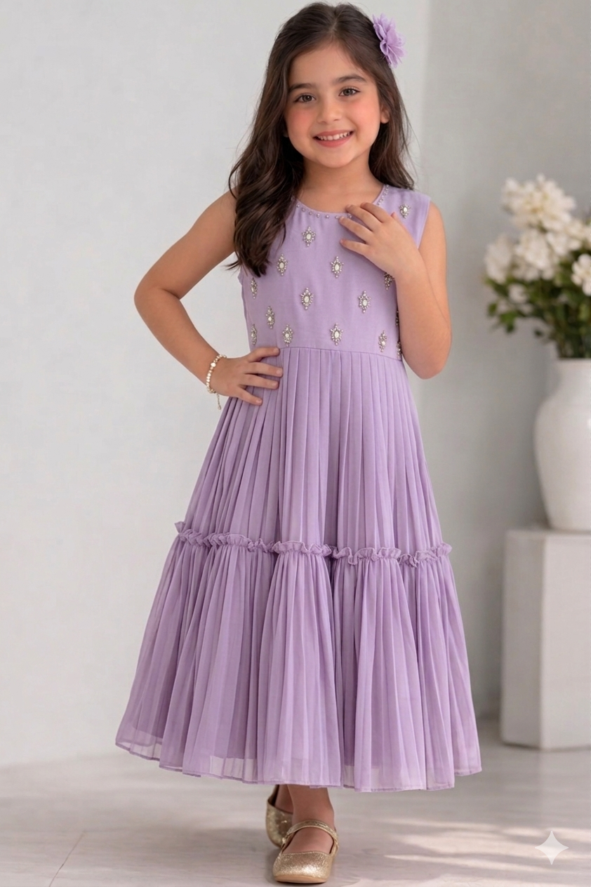 Heavily gathered long frock. with embellishments on upper body. Paired with a dupatta.