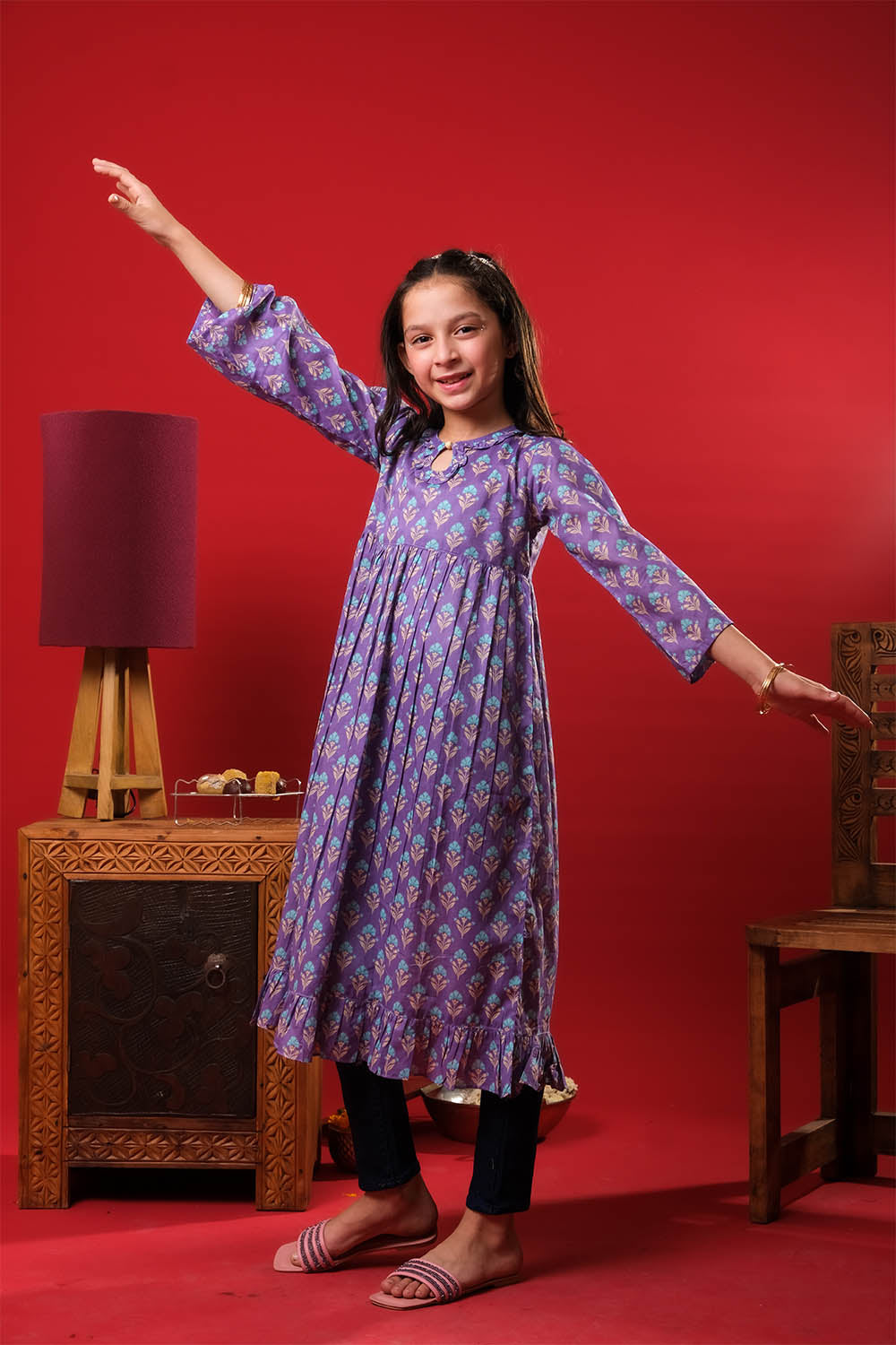 Kids Eid Dress | Purple & Multicolor | Casual Kurta | Cotton Lawn Printed | KAA-03270