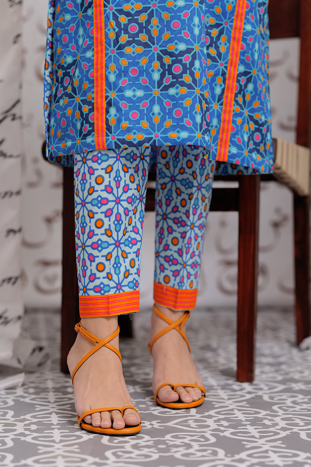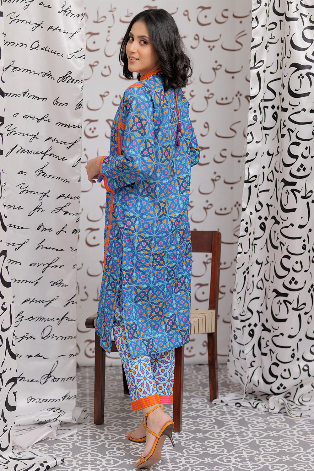 LAC-02164 | Blue & Multicolor | Casual 2 Piece Suit | Cotton Lawn Print